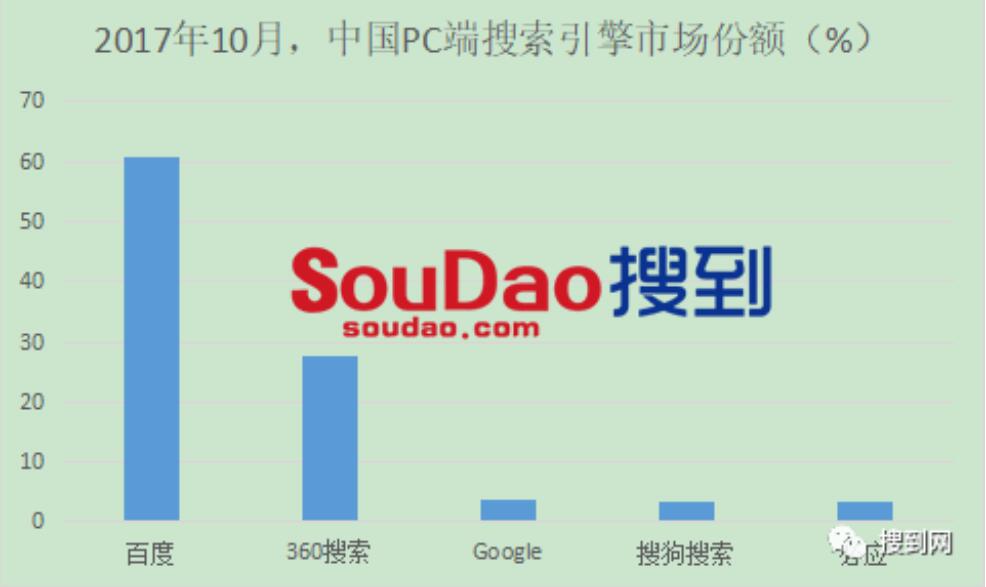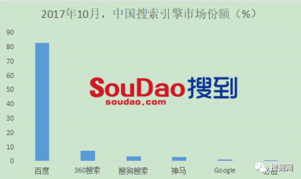 2017年10月,百度国内市场份额为82.99%,排名第一(即zui大);