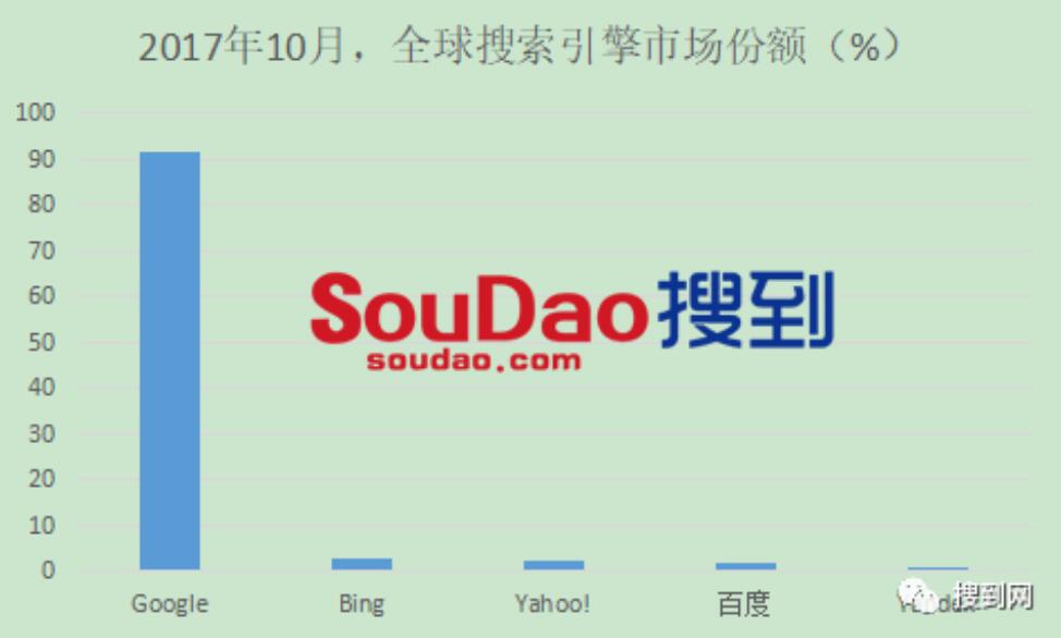 2017年10月,Google全球市场份额为91.49%,排名第一(即zui大);