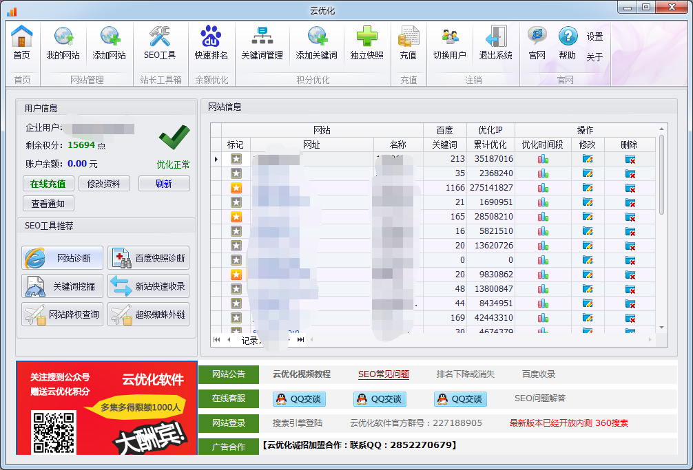 云无限网站优化排名软件功能大解析